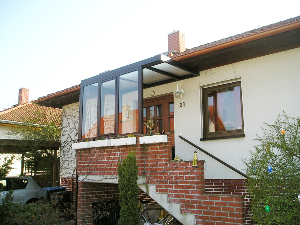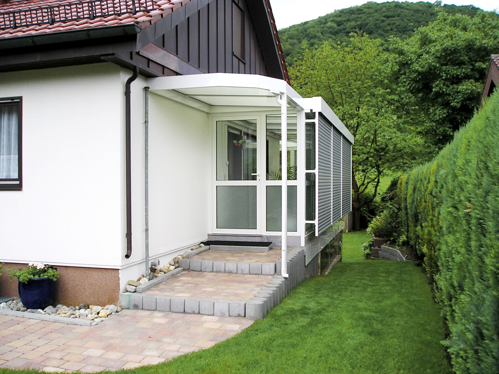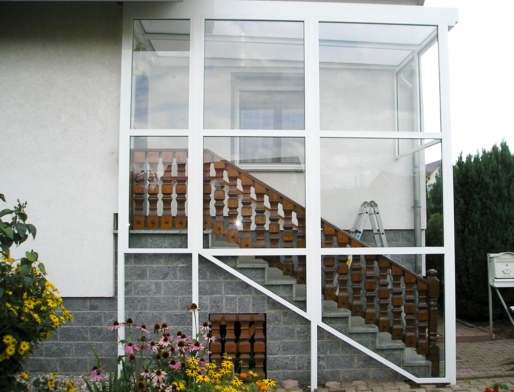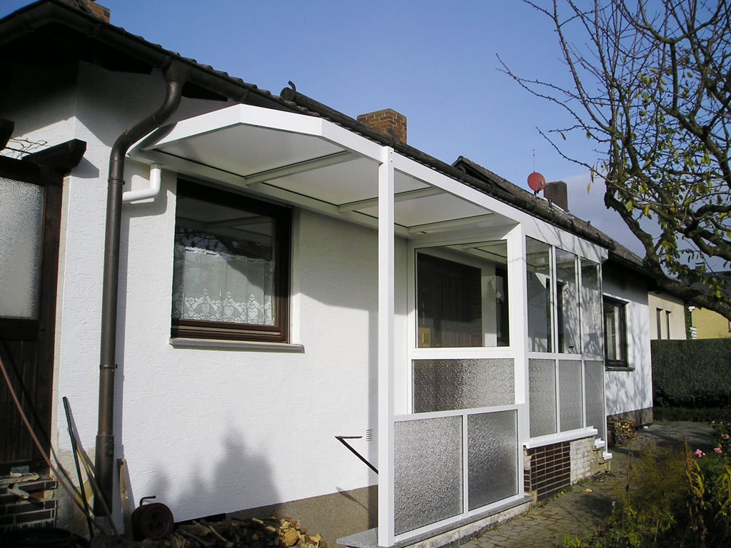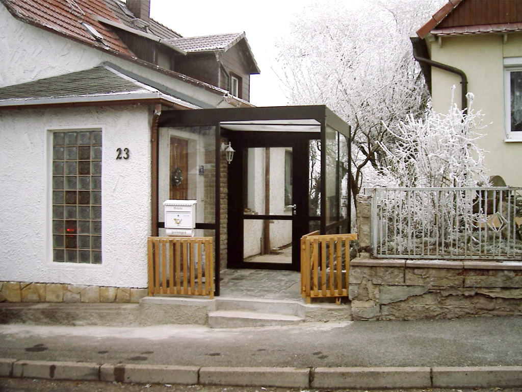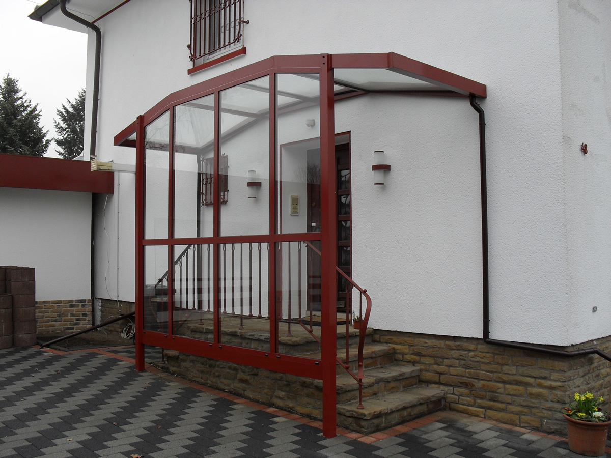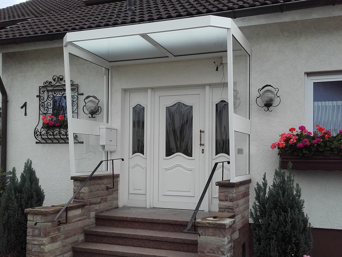 Mit einer Hauseingangsüberdachung von der AMR Wintergarten & Alu-Technik GmbH sind Sie immer auf der sicheren Seite.
