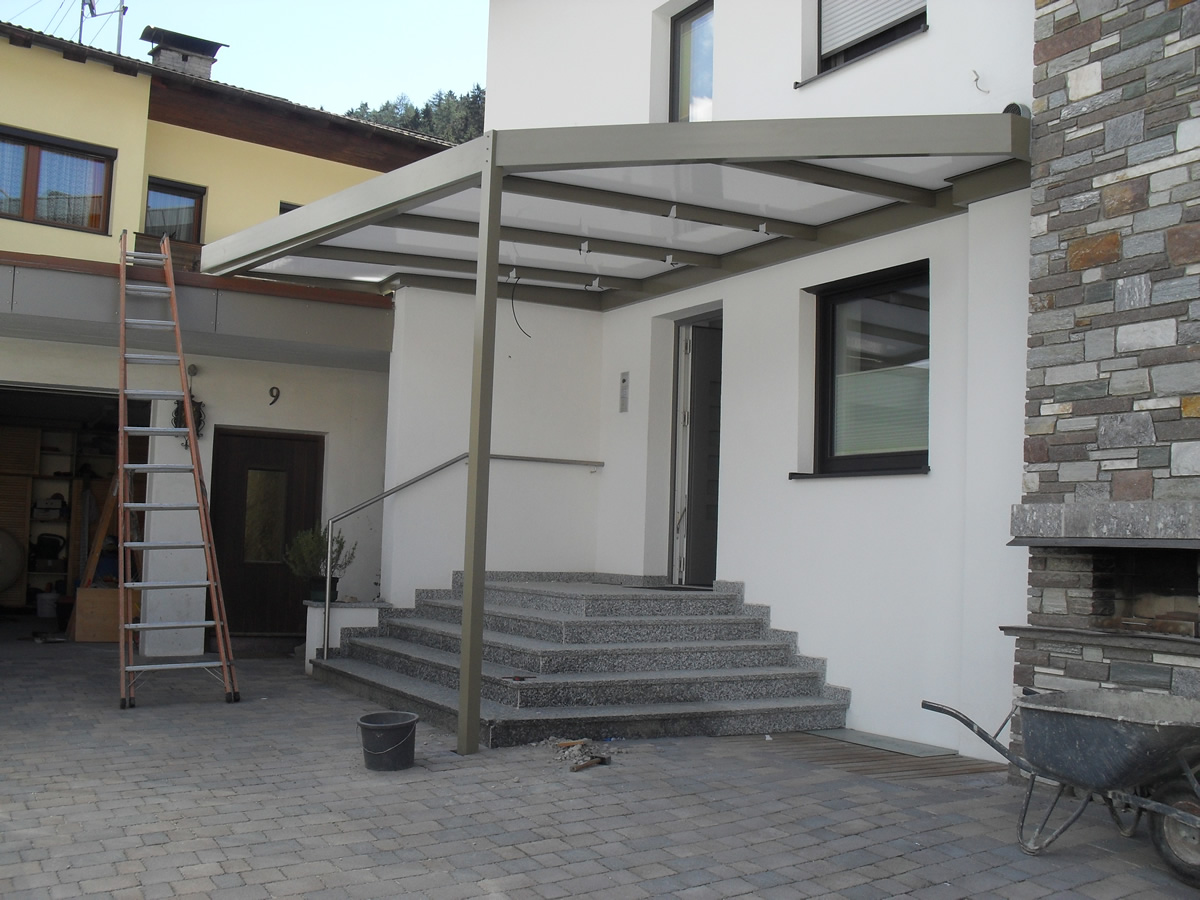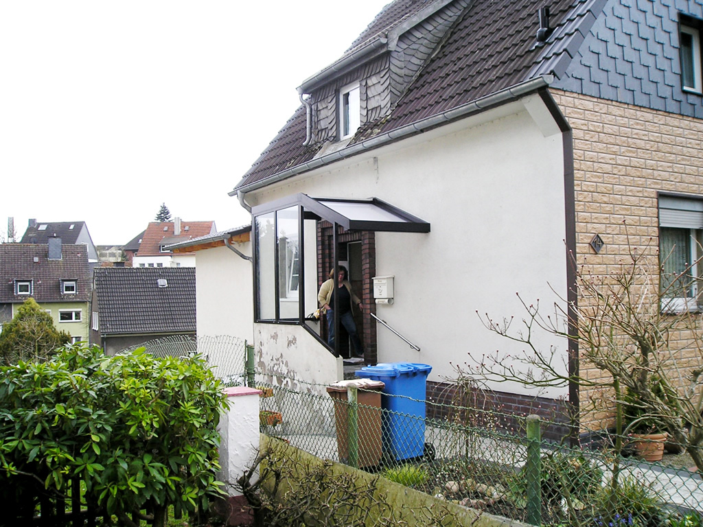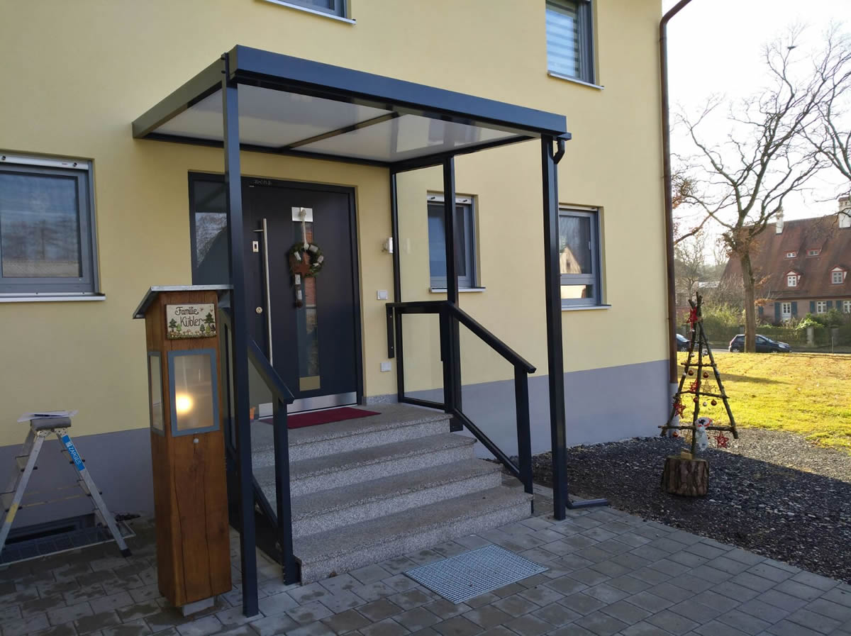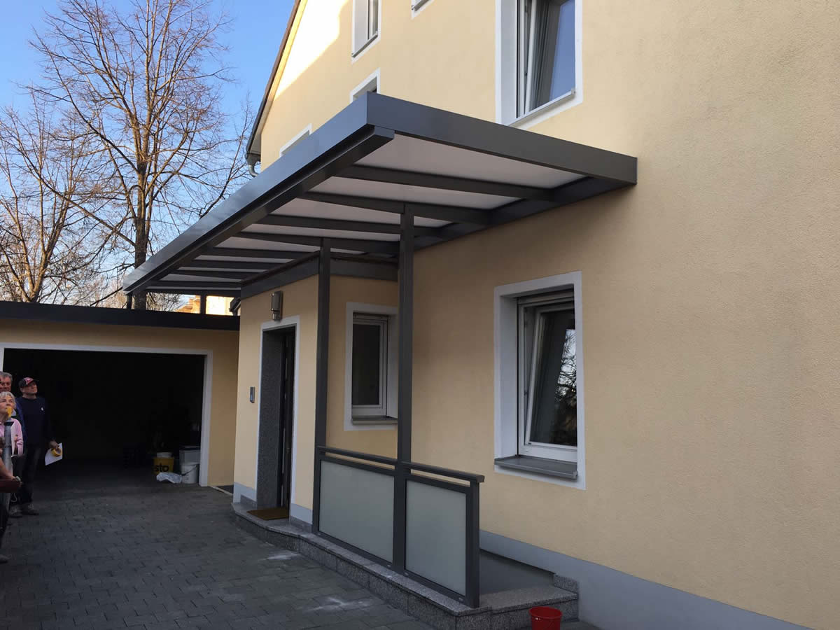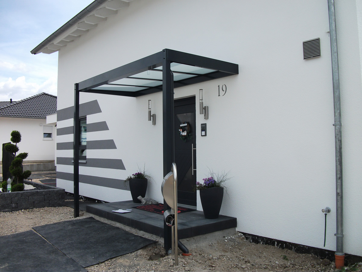 Die Vielseitigkeit des Aluminiums ermöglicht es uns, ein Vordach komplett nach Ihren Wünschen zu gestalten. Mit einer von uns gefertigten Hauseingangsüberdachung machen Sie Ihren Eingangsbereich zu einem exklusiven Blickfang.